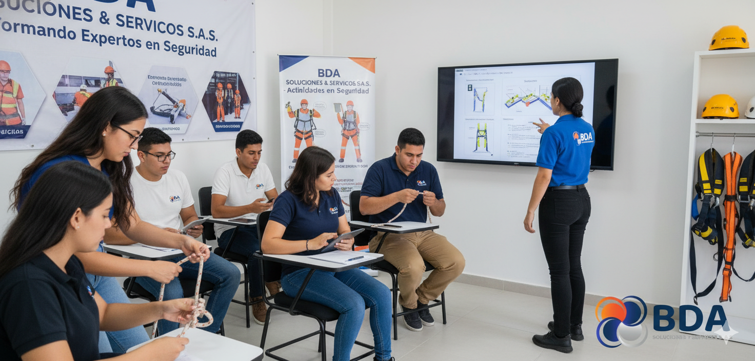 En BDA SOLUCIONES & SERVICIOS S.A.S. buscamos cumplir con los más altos estándares, preparando a individuos para enfrentar el mercado laboral con confianza y habilidades sólidas en materia de trabajo en alturas.